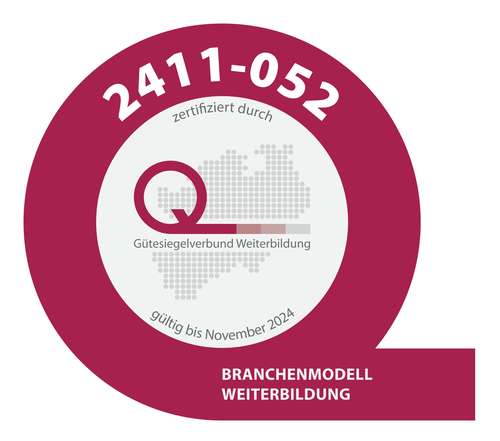 Seit September 2009 wenden wir das Qualitätsmanagement-System nach Gütesiegelverbund Weiterbildung an. Seitdem überwachen und überprüfen wir regelmäßig unser QM-System, das alle drei Jahre von einem:er unabhängigen Gutachter:in zertifiziert wird. Diese Zertifizierung berechtigt uns, das „Gütesiegel Weiterbildung“ zu führen. Das Gütesiegel dokumentiert, dass wir Weiterbildung auf hohem Qualitätsniveau sowohl inhaltlich als auch organisatorisch anbieten. Die aktuelle Zertifizierung hat eine Gültigkeit bis zum 30.11.2024, danach ist eine Rezertifizierung erforderlich.
